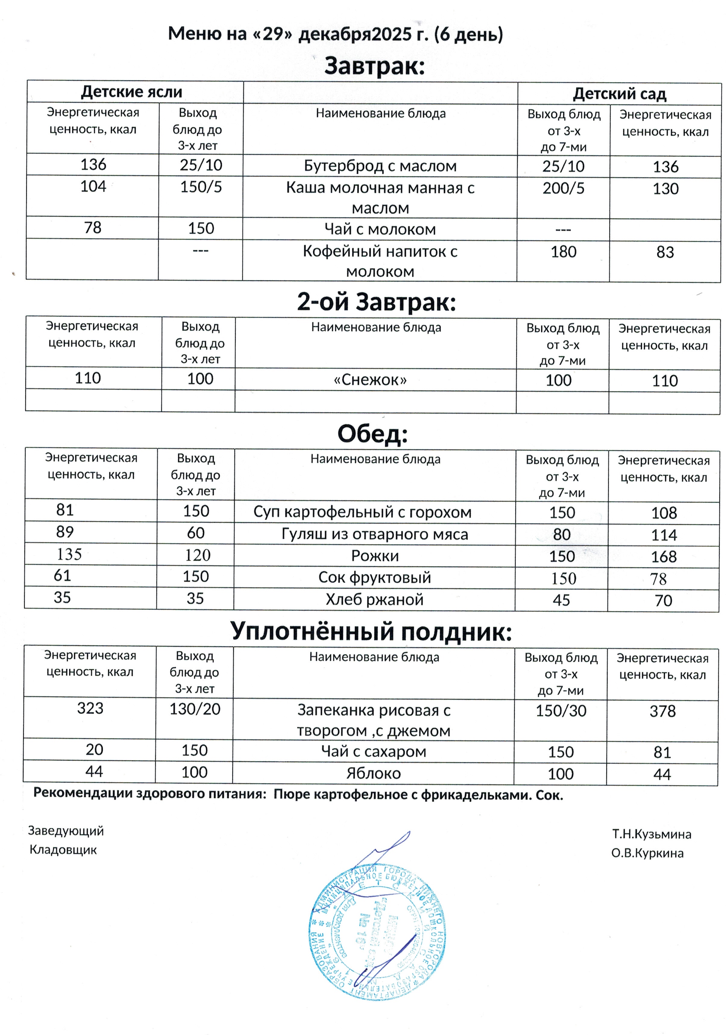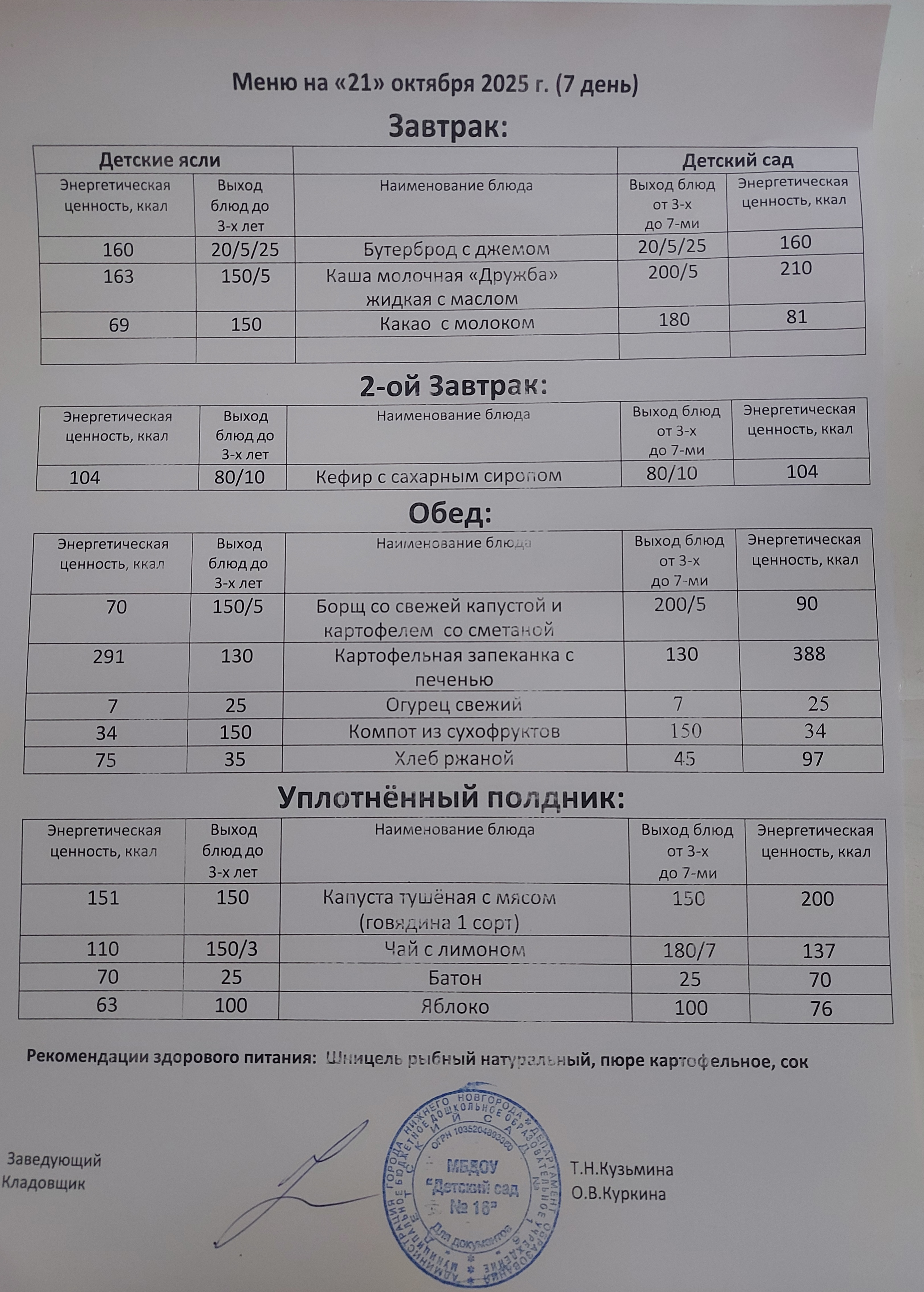- Основное (организованное) меню для организации питания детей 3 - 7 лет, посещающих муниципальные дошкольные образовательные учреждения города Нижнего Новгорода с 12-часовым пребыванием