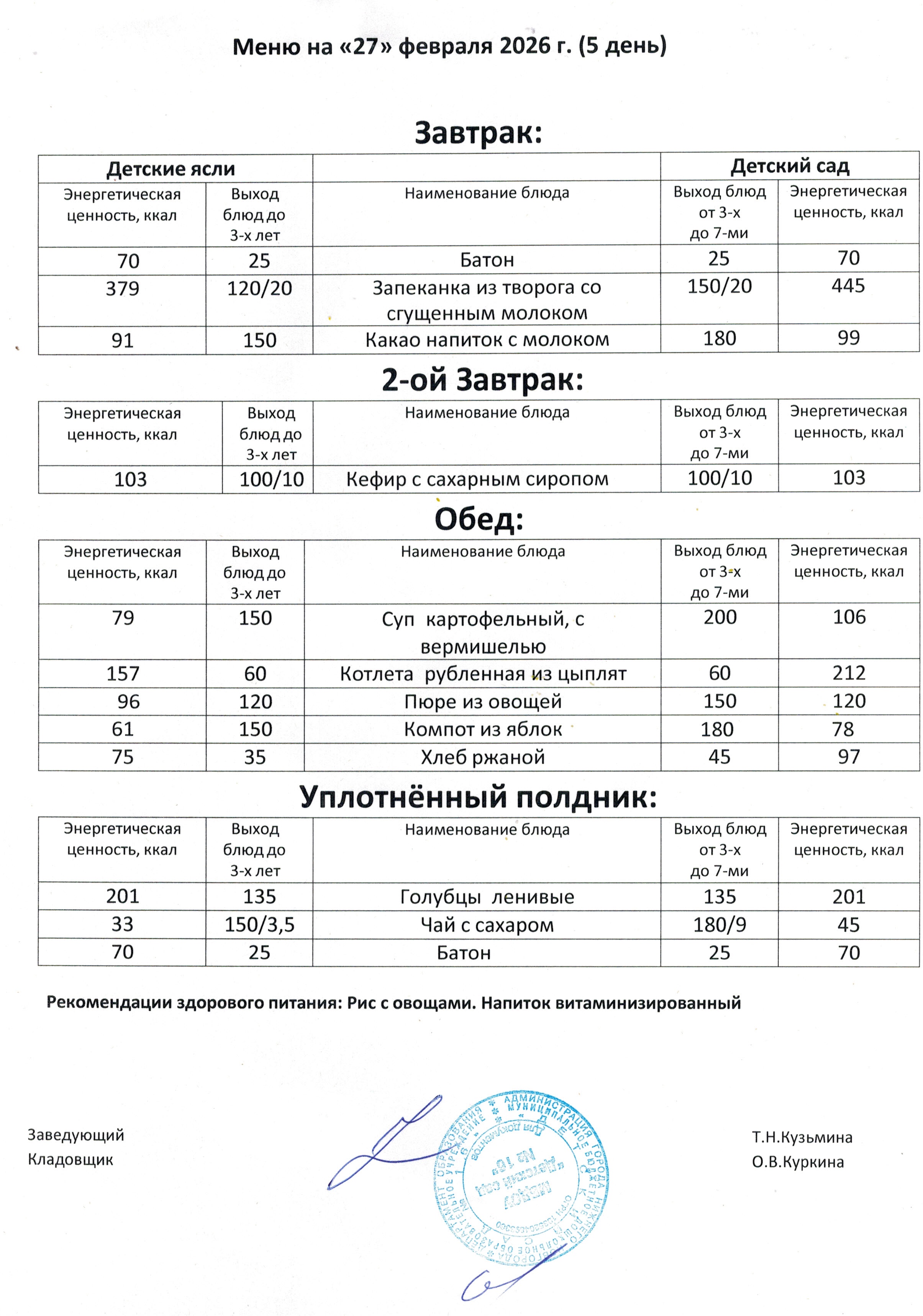 Ежедневное меню: