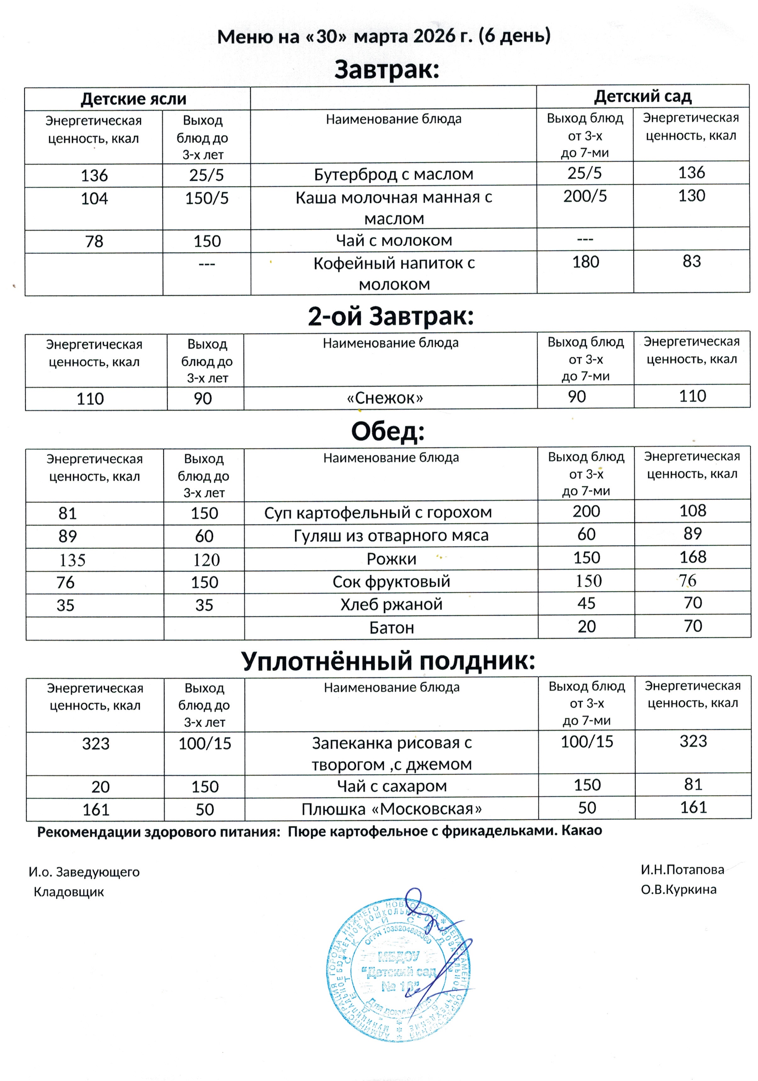 - Основное (организованное) меню для организации питания детей 1,5 - 3 лет, посещающих муниципальные дошкольные образовательные учреждения города Нижнего Новгорода с 12-часовым пребыванием